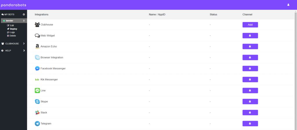 Pandorabots offers a bunch of integrations that let users plug their chatbots into different platforms. You can connect with messaging apps like Facebook Messenger, WhatsApp, and Telegram.