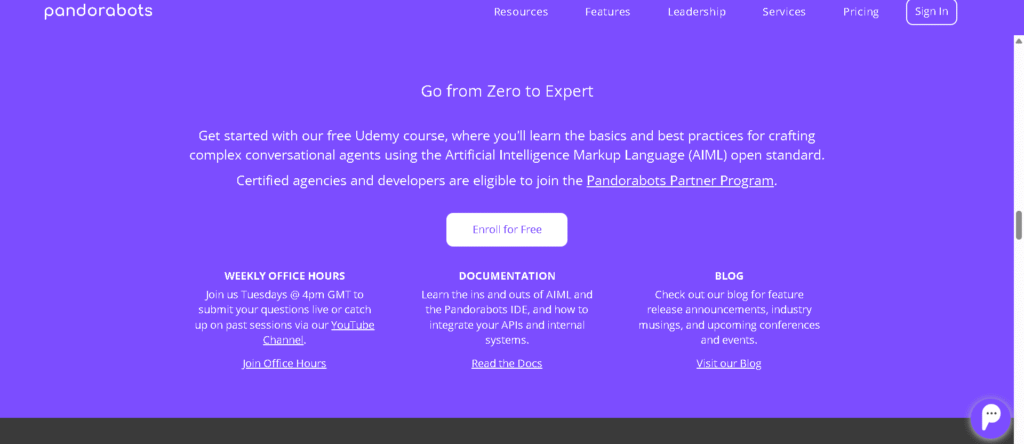 The different pricing tiers of Pandorabots offer a range of features for all kinds of users. The free tier lets you create and test basic bots, which is a good way to get a feel for what the platform can do.
