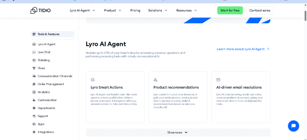 Tidio AI also has a series of help desk features that can help business to organize, streamline and prioritize support activities. It has ticketing feature that tracks and manages requests that need human intervention.