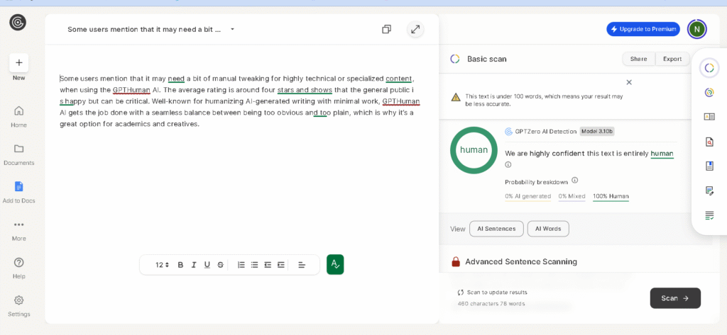 When using GPTHuman AI, users are experiencing inconsistent text quality, particularly with complex or technical content. They are saying that isn’t perfect against all the latest and greatest AI detectors.