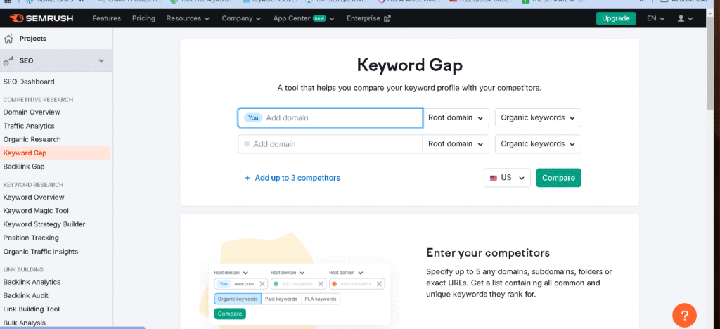 Several of the reasons that make SEO experts and marketing teams prefer Semrush as their main SEO tool are: An example of one such advantage is the enhanced “domain overview” functionality of Semrush which provides a top level description of a site’s presence online. Its database within the keyword research tool is much bigger than several of the competitors, allowing you to have more data for your keyword strategy.
